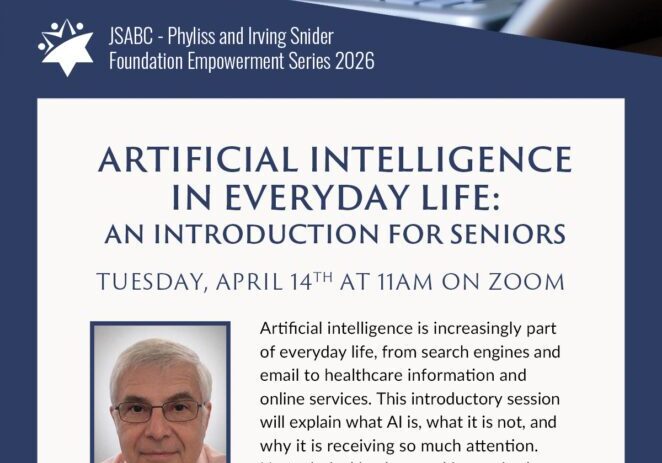 JSA-Phyliss and Irving Snider Foundation Empowerment Series:Artificial Intelligence in Everyday Life: An Introduction for SeniorsTuesday,...