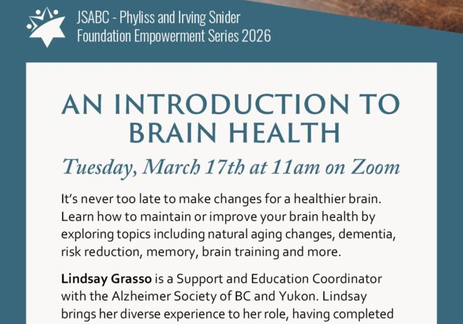JSA-Phyliss and Irving Snider Foundation Empowerment Series:An Introduction to Brain HealthTuesday, March 17th at 11:00...